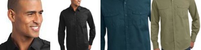 Perfect for uniforming, the soil-release finish helps maintain a spotless, professional look. Epaulets and roll sleeves give this colorfast shirt contemporary, military-inspired style.