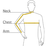 | Chest | 21 1/2 | 23 | 24 1/2 | 26 | 27 1/2 | 29 1/2 | 31 1/2 | 20 |